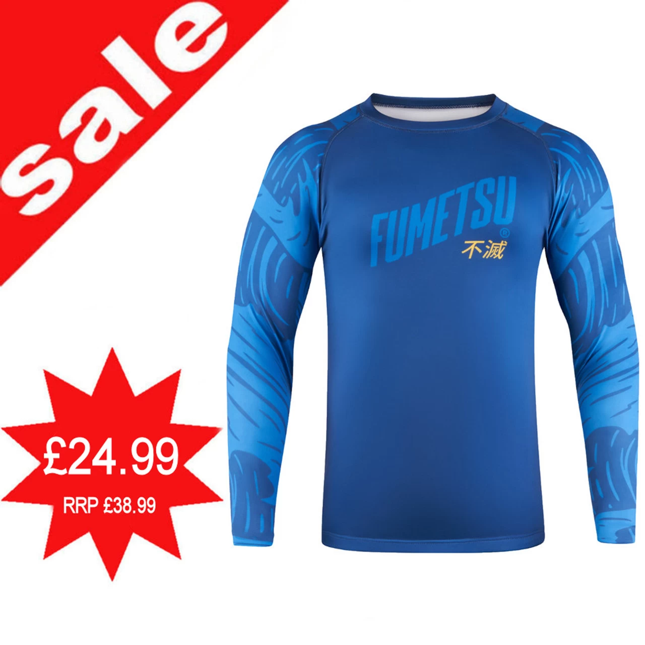Roll and flow back to the mat in the Fumetsu Waves MK2 long sleeve rash guard. Made of durable polyester, this rash guard is soft, comfortable and built to last. The unique surf and roll wave design is on both sleeves and best of all, our fully sublimated graphics will never fade or peel.