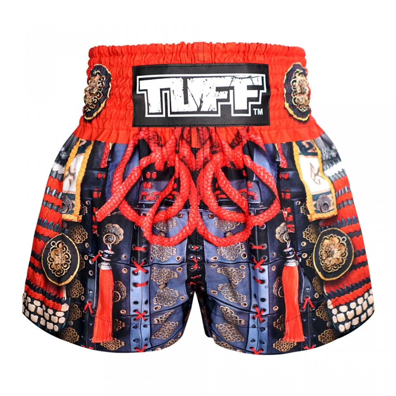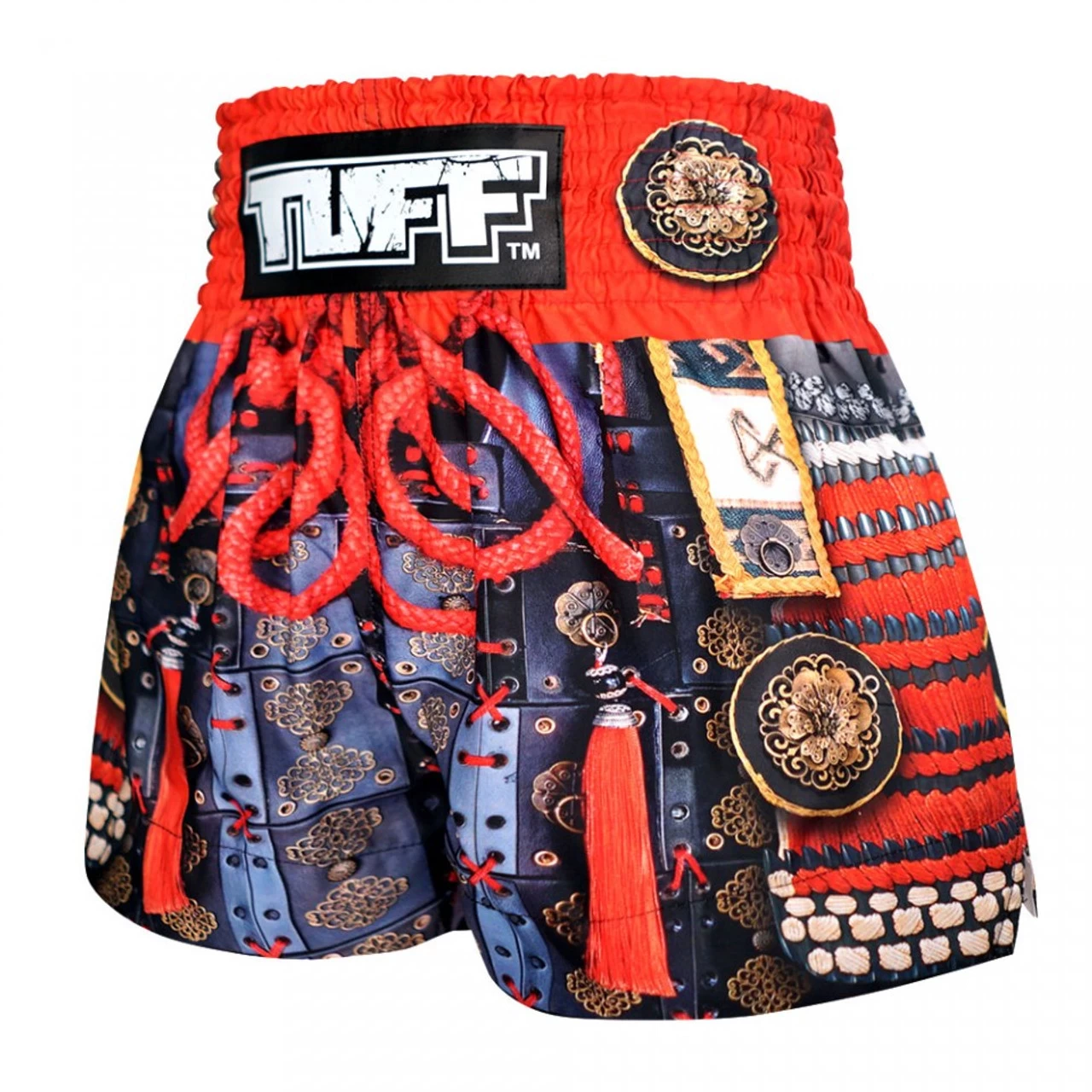 Traditional style Muay Thai shorts with full waistband and wide leg cut.